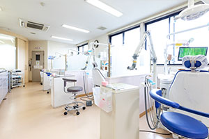 除菌水システム“エピオスエコシステム”を導入。口腔外バキュームを各診療台に完備など、安心・安全な治療空間を実現。歯科用CTやエアフローなどの各種設備も充実。